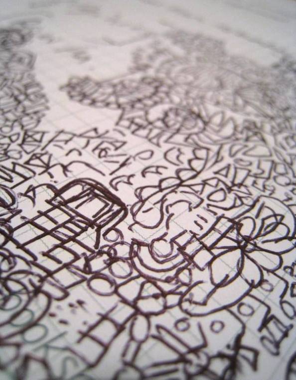It’s been a while since I’ve done any serious doodling. This one above was done during a 3.5hr phone call. I think the best ones happen under these conditions, when you are truly absentminded. Wouldn’t it be fun to see if you could track the topic/words against the lines and patterns and see any correlation? A bit like a seismographic record of thoughts and feelings.