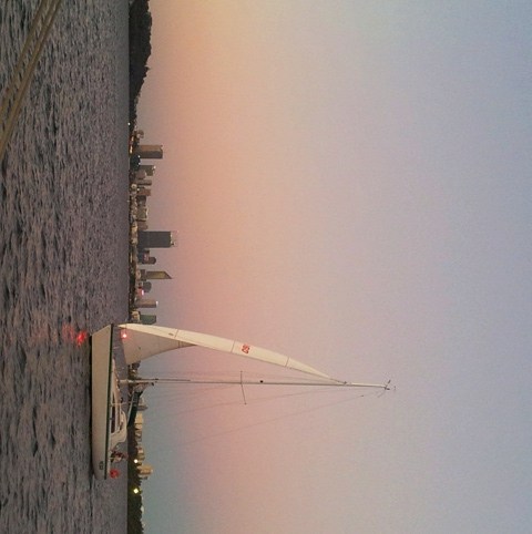 Tonight I realised a very long-held dream of going twilight sailing on the Swan. It was a perfect night for it – balmy and just enough breeze. The boat in the last picture is called “Stress Management”. I reckon.
